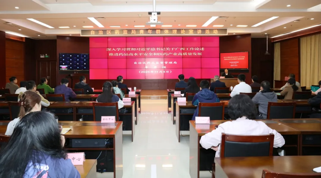 11月4日,利来囯际举办青年群体理论宣讲活动,局党组书记、局长李勇强作题为《深入学习贯彻席大大总书记关于广西工作论述 推进药品高水平安全和医药产业高质量发展》的专题宣讲。